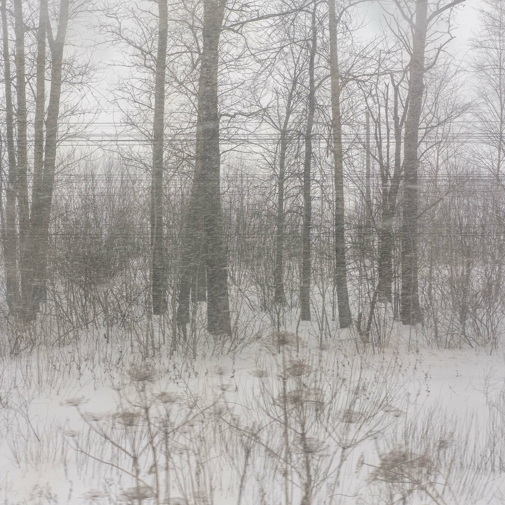 В неопределенный момент оно сменяется пустотой сознания, не справляющегося с потоком однообразных чередующихся картин: залатанное дорожное полотно, скачущая разметка, дома — покосившиеся деревянные и ровные сайдинговые — леса, синусоиды проводов, кресты, машины, поля, повороты, столбы, запятые пустых остановок и снова леса. Внесезонная распутица, неустроенность, самобытность, грусть несвершившегося и принятие неизбежного.